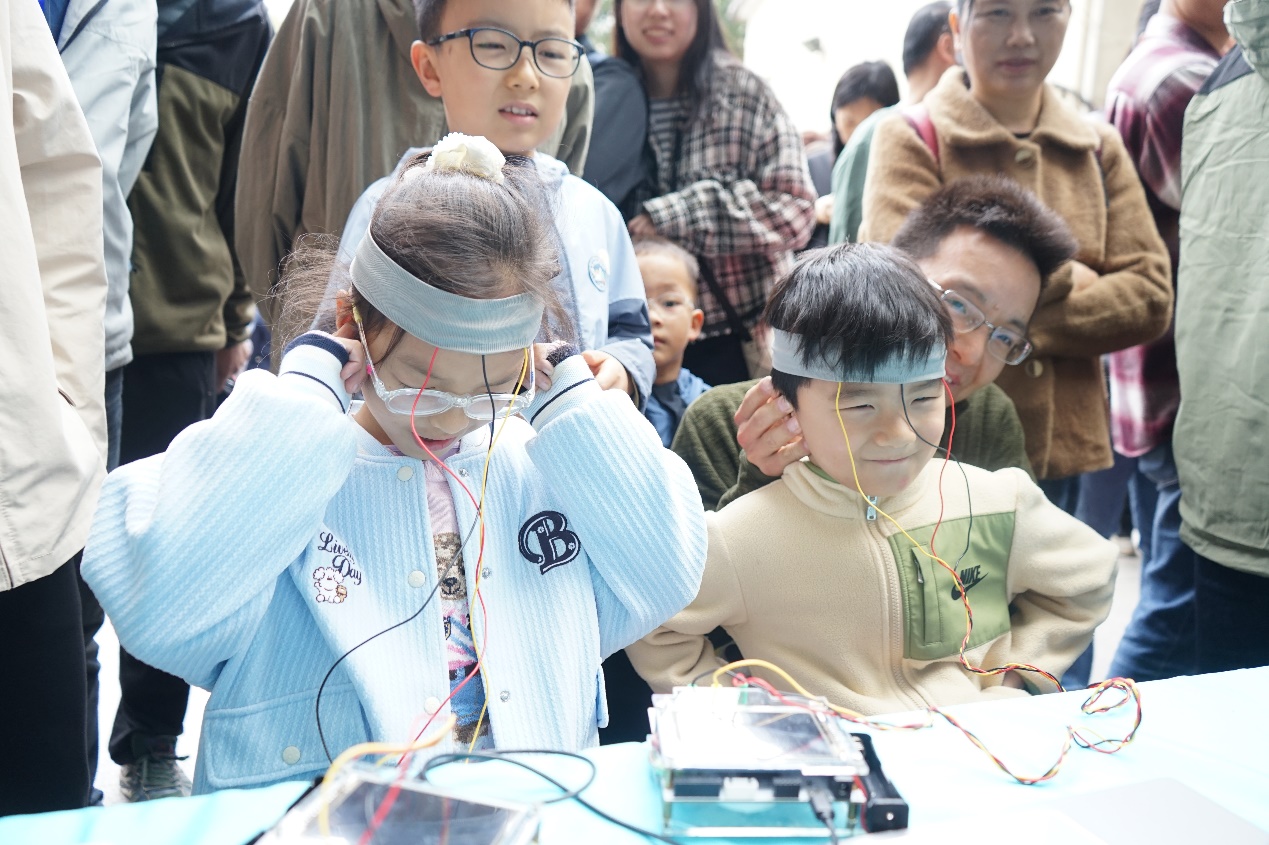 11月8日,一場別開生面的“腦智擘未來”科普市集在腦智卓越中心岳陽園區(qū)開啟。“力量召喚閃電”實(shí)驗(yàn)讓參與者通過手臂發(fā)力觸發(fā)“云朵閃電”,直觀感受肌電信號的產(chǎn)生與傳導(dǎo);“腦電對抗”與“腦電協(xié)作”通過測量注意力與腦波協(xié)同,以競賽與協(xié)作方式揭示大腦在不同認(rèn)知狀態(tài)下的活動模式;“眼控小車”項(xiàng)目則借助眼動信號控制車輛行進(jìn),展現(xiàn)人機(jī)交互的前沿應(yīng)用。這些互動項(xiàng)目將高深的神經(jīng)信號機(jī)制轉(zhuǎn)化為趣味體驗(yàn),讓公眾在動手參與中走近科學(xué),領(lǐng)悟探索的魅力,科學(xué)由此實(shí)現(xiàn)了從“高大上”到“接地氣”的轉(zhuǎn)化,從書本和實(shí)驗(yàn)室走向公眾,構(gòu)建起公眾主動參與的互動生態(tài),“科學(xué)離我很近”成為現(xiàn)場最直觀的感受。