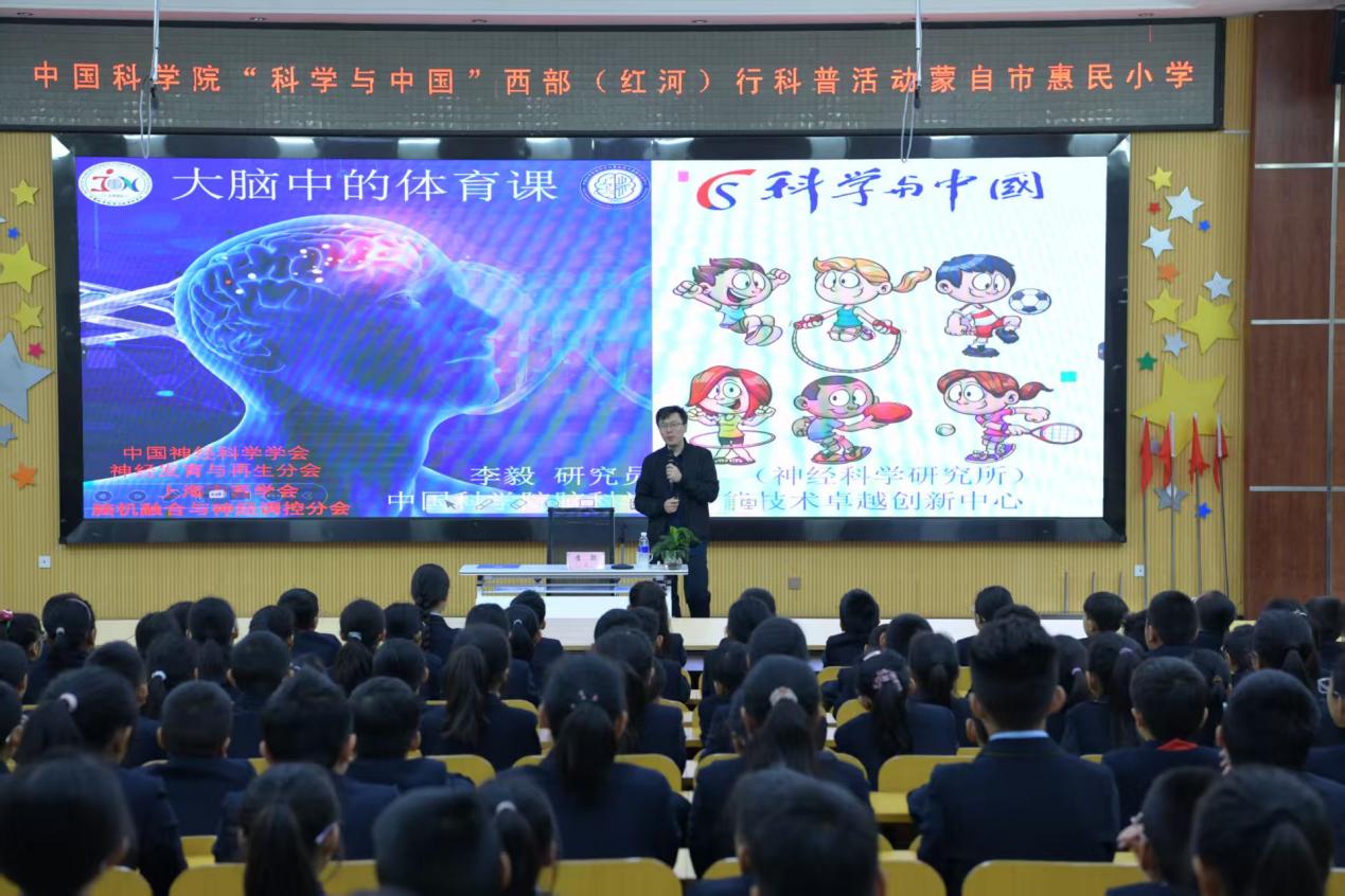 11月3日至4日,李毅研究員參與上海分院組織的“科學(xué)與中國”西部行科普活動,歷經(jīng)十小時路程遠(yuǎn)赴紅河,將優(yōu)質(zhì)科學(xué)資源送達(dá)西部青少年身邊。他為蒙自市惠民小學(xué)、文瀾中心學(xué)校帶來“大腦中的體育課”與“心靈閃電”科普報告,從腦控機(jī)械臂的原理講到光遺傳學(xué)的前沿應(yīng)用,并結(jié)合團(tuán)隊(duì)突破國外技術(shù)封鎖、自主研發(fā)無線植入腦機(jī)接口的真實(shí)案例,詮釋了科學(xué)家堅(jiān)守報國的“硬核”精神,點(diǎn)燃了西部青少年探索科學(xué)的熱情。