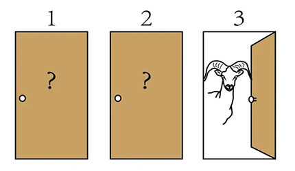 假設你正在參加一檔真人秀電視節(jié)目,在你面前有三扇門。其中一扇門后藏有本期超級大獎——高級轎車一部,而剩下兩扇門后則各有一只山羊。現(xiàn)在你隨機選了其中的一扇門(1號門),但還沒來得及打開它。節(jié)目主持人清楚地知道每扇門后面都是什么,他此時打開了另一扇門(3號門),3號門里是一只山羊。現(xiàn)在問你,要不要改變選擇,從1號門換成2號門?