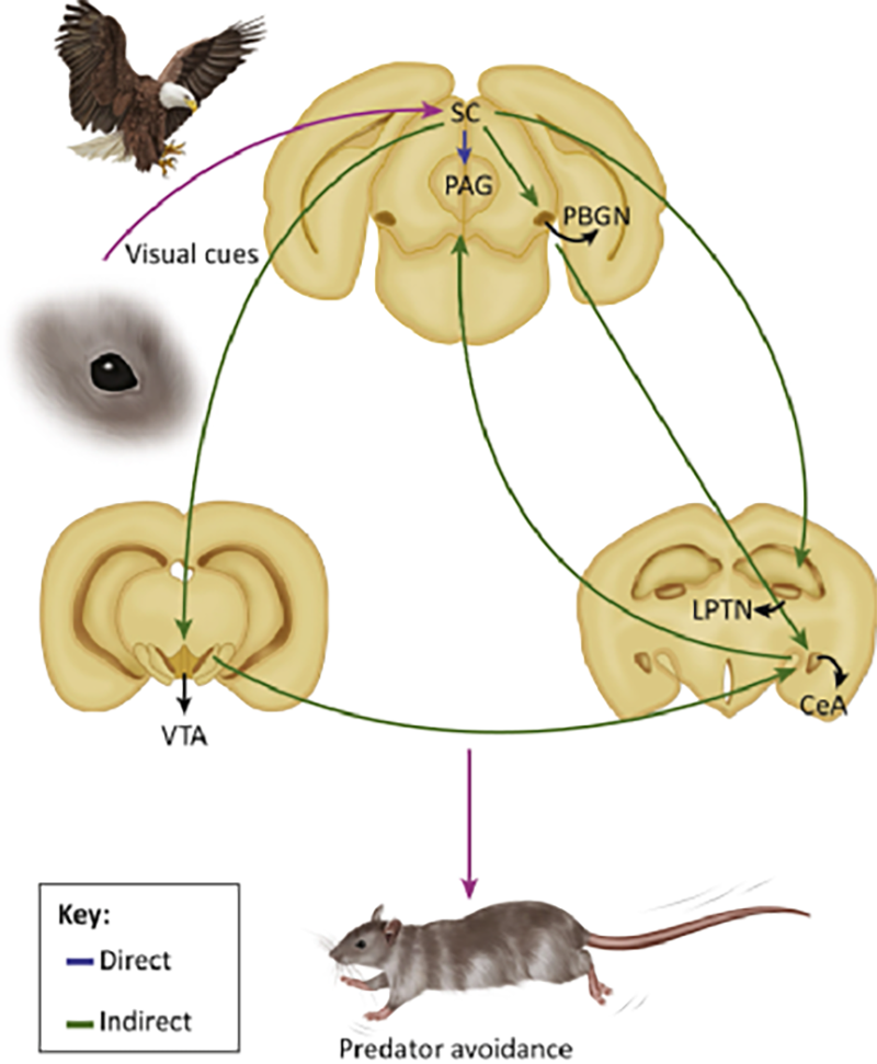 小鼠腦中負(fù)責(zé)逼近黑影刺激的視覺(jué)通路