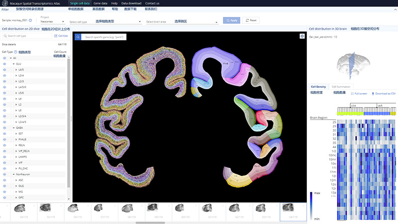 該研究產生了較為完整的世界首套獼猴全腦皮層的單細胞以及空間轉錄組數據,為后續相關研究提供了重要的數據資源庫,現已實現公開共享(https://macaque.digital-brain.cn/spatial-omics)(圖3)。