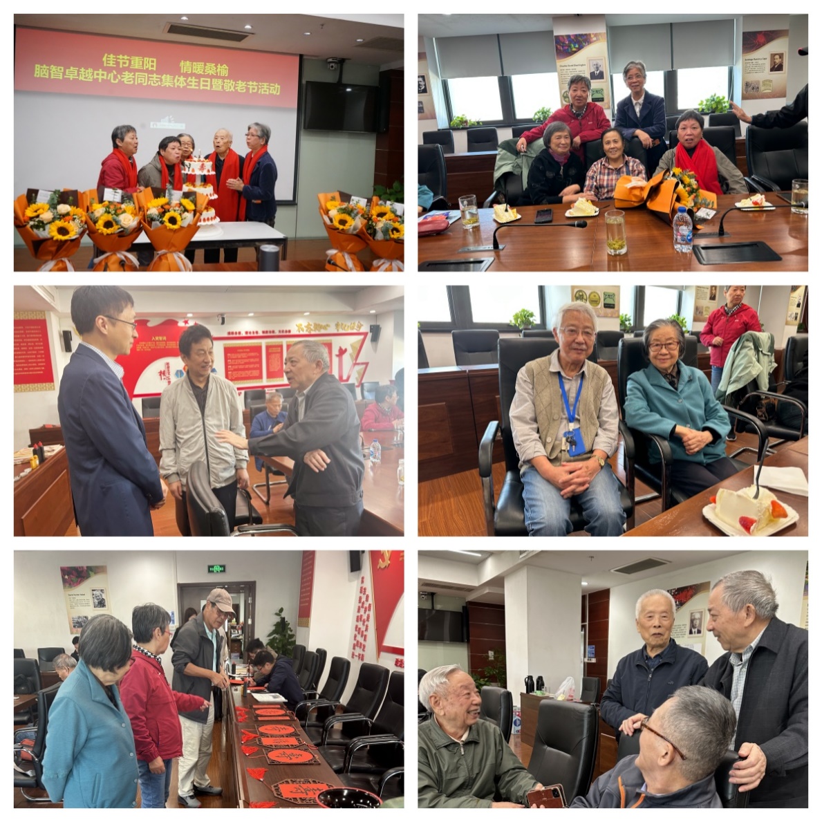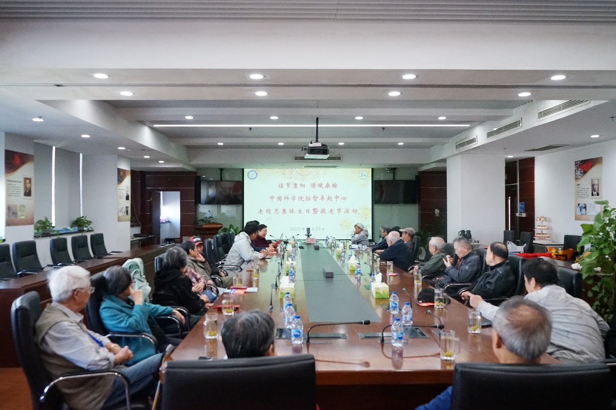 ????金秋送爽,丹桂飄香。在重陽佳節到來之際,為弘揚中華民族尊老、敬老、愛老的傳統美德,表達對離退休老同志的崇高敬意與深切關懷,10月29日,腦智卓越中心精心組織了一場溫馨而又歡樂的集體生日暨敬老節活動,為老同志們送上特別的節日祝福與生日問候,近20位老同志參加活動。黨委書記、副主任孫衍剛,黨委委員、科研管理處處長朱金啟,人事人才處處長黃蘇榕等出席活動,與老同志們親切座談、交流。