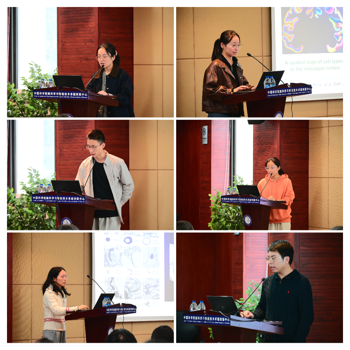 在口頭報(bào)告環(huán)節(jié),杜赟、李嘉傲、時(shí)燦、孟娟、劉安然、張皓等研究生分別就前額葉皮層序列工作記憶、斑馬魚全腦微觀重建、獼猴皮層疾病基因調(diào)控元件圖譜、海馬空間功能組織、交感神經(jīng)血氧穩(wěn)態(tài)調(diào)節(jié)等前沿課題進(jìn)行了精彩匯報(bào),展現(xiàn)了中心研究生扎實(shí)的科研功底和創(chuàng)新的科學(xué)思維。